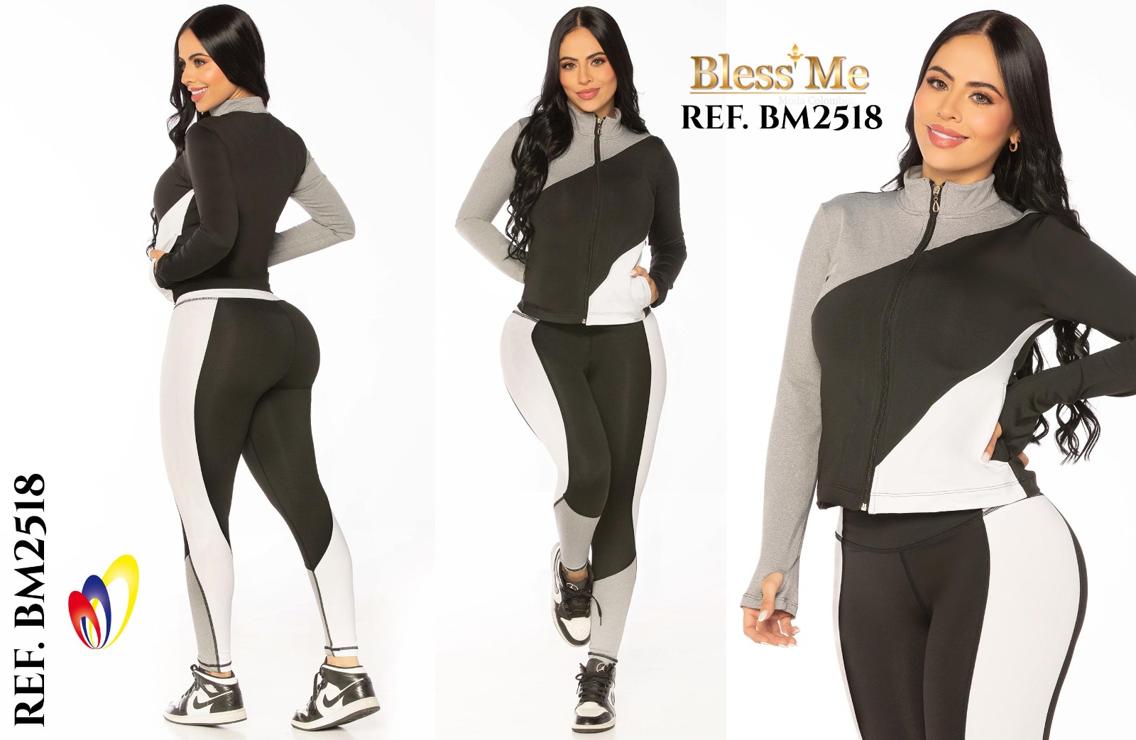 El Conjunto Deportivo Ref. BM2521 de Bless Me destaca por su diseño geométrico en tonos turquesa y negro, una combinación moderna que aporta frescura y dinamismo al look deportivo. Ideal para mujeres que buscan sentirse cómodas y seguras sin renunciar al estilo.