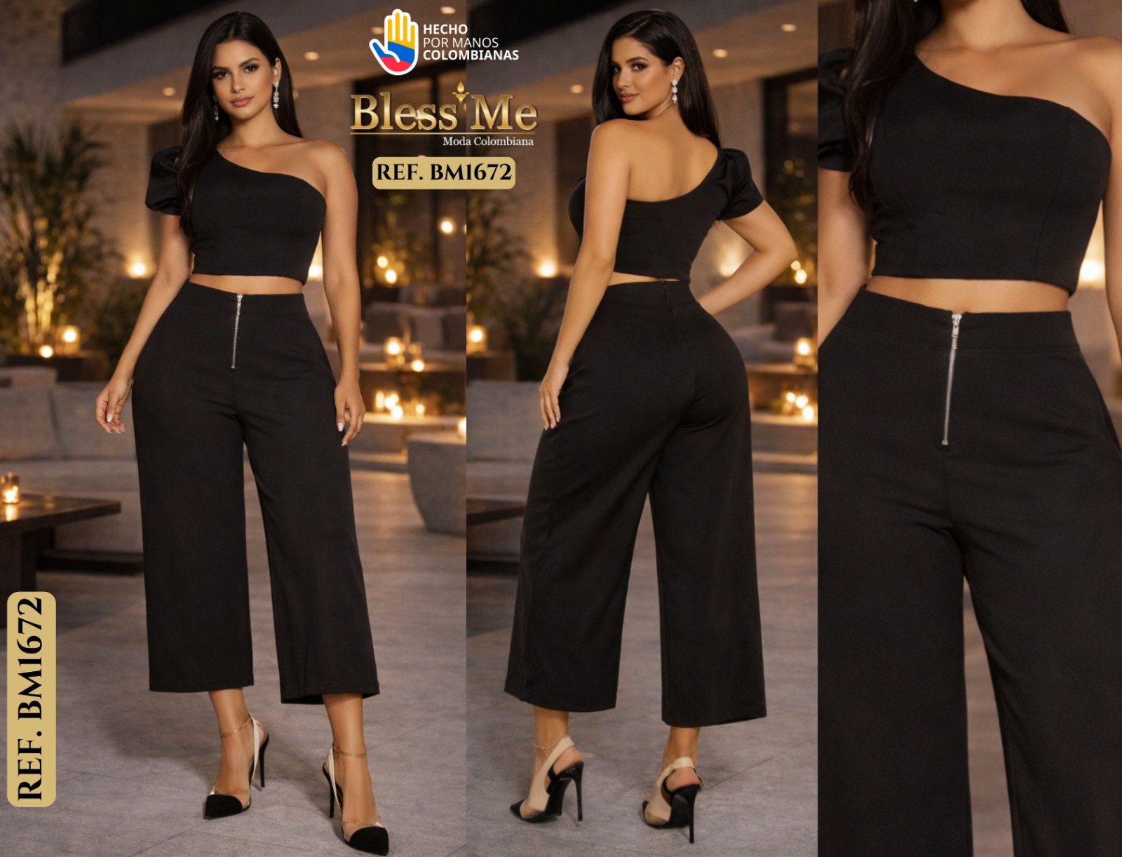 ¡Deslumbra con el conjunto de blusa manga corta sin cuello y pantalón en color negro de Bless Me, la marca colombiana que redefine la moda con su estilo innovador y sofisticado! Este conjunto es una auténtica expresión de la creatividad y la calidad que caracterizan a Bless Me.