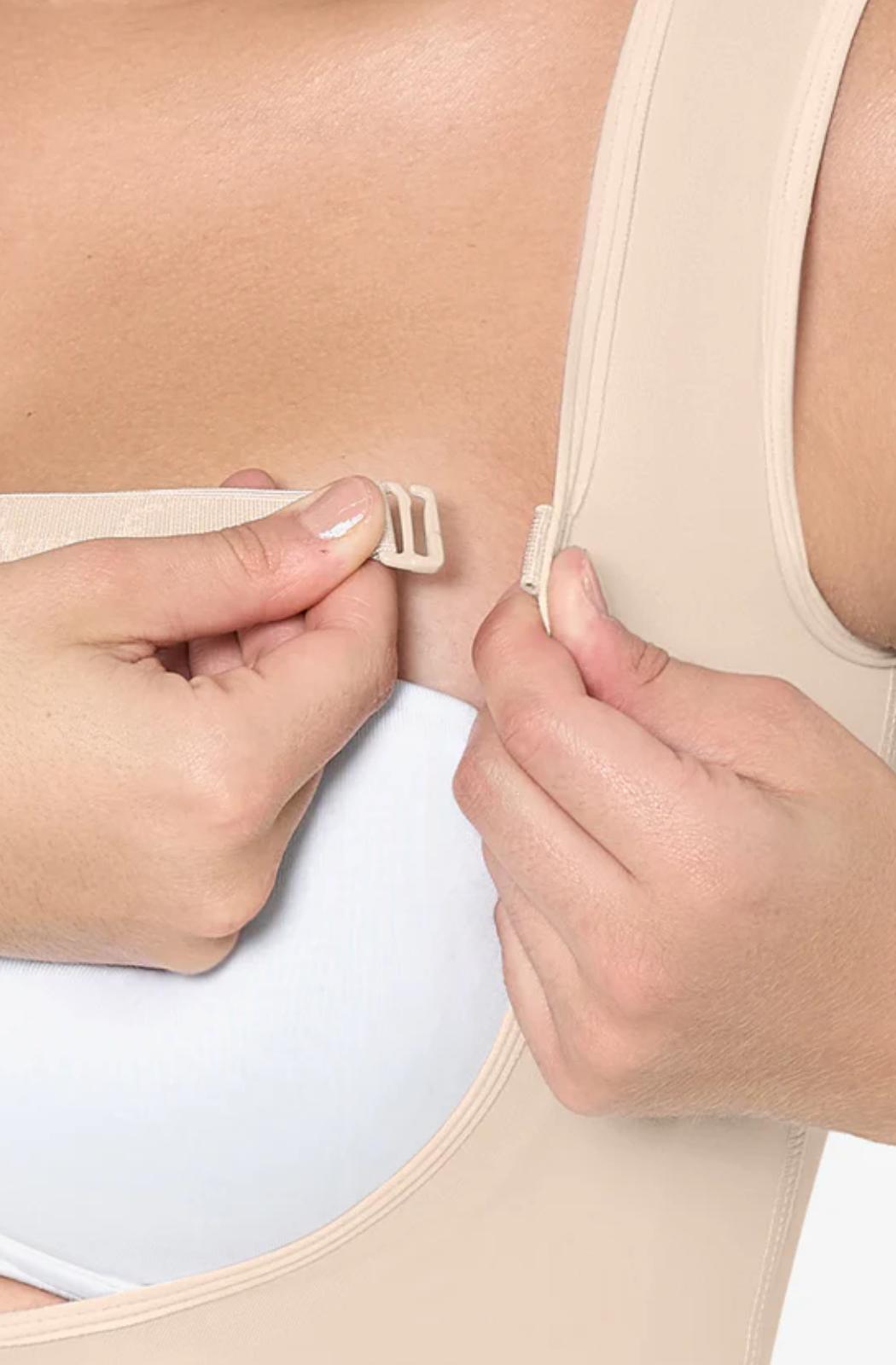 Para mayor versatilidad, la cargadera es removible en el busto, permitiéndote adaptar la faja a diferentes prendas de vestir. Además, cuenta con 3 niveles de ajuste frontal para brindarte un control preciso sobre la compresión, adaptándose a tu progreso en la recuperación.